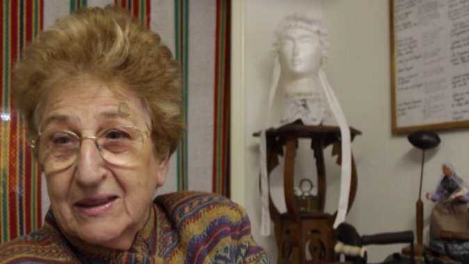 Alòr aquí l’a una peça d’un kilò. Per va tenir dins lei mans, fa mau hein alòr si pren lo bacèu e si pica dei quatre costats. Coma aquò lei mans son mièlhs pausadas dessús. Vesètz ! E aquò es de sovenirs de mon enfança pasqué ma maire mi menava au lavador e ère pas grandeta, me metiá una pèira perqué siaguèsse arribada au lavador. D’alhors ma maire mi disiá : « Se trabalhas pas ben a l’escòla faràs la bugadiera ». E aquò m’agradava de faire la bugada, de faire bolhir. Meme qu’un an, un an, quand fasiáu meis estudis, per ganhar un pauc de sòus, l’aviá una cosina qu’aviá un hôtel-restaurant e que metiá de toalhas blancas, lei servietas blancas e totei lei jorns anavi cercar lo linge que mi disiá : « Fas pas bolhir, colas la lessiva ! ». Totei lei jorns colave aquò, lo linge blanc, hein, alòr sabe ce qu’es hein !